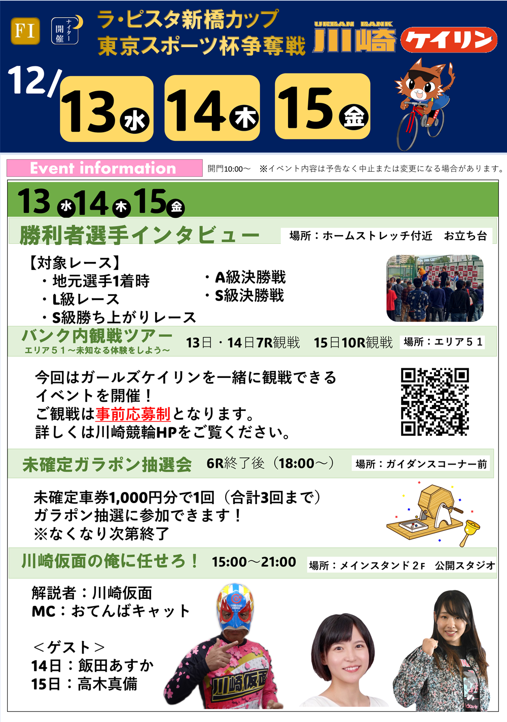 川崎競輪 ラ・ピスタ新橋カップ 東京スポーツ杯争奪戦(12月13日~12月15日)開催情報