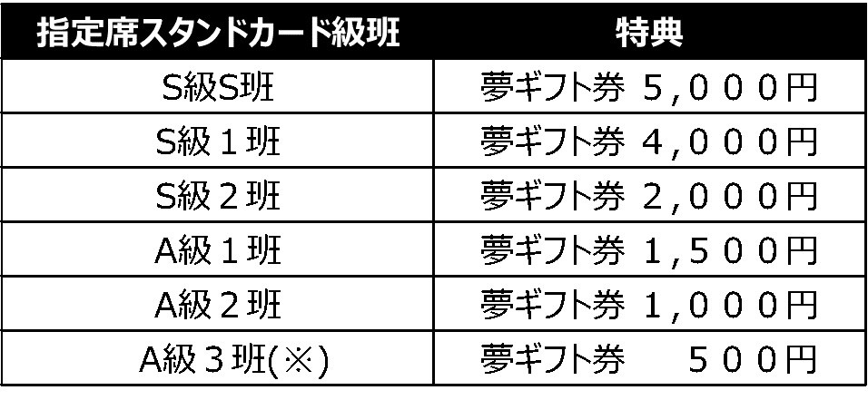 ※A級3班カードは、スタンプが15個未満の場合、交換対象外とさせていただきます。